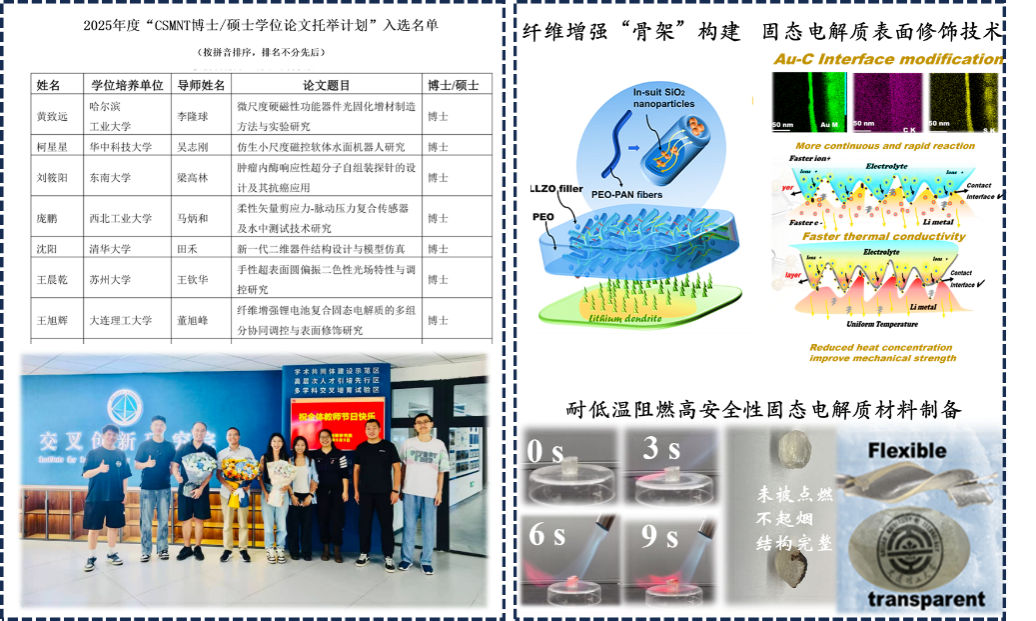 先进智能制造中心团队:王旭辉博士(左五)、周宏伟教授(左四)、赖佳亮博士(左三);纤维增强锂电池复合固态电解质的多组分协同调控与表面修饰;